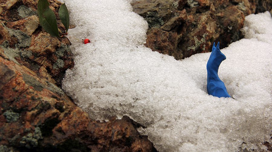The sun rises, and Nature and all its inhabitants wake up. One of them, alone, leaves home in search of his favorite food, Pyracantha…