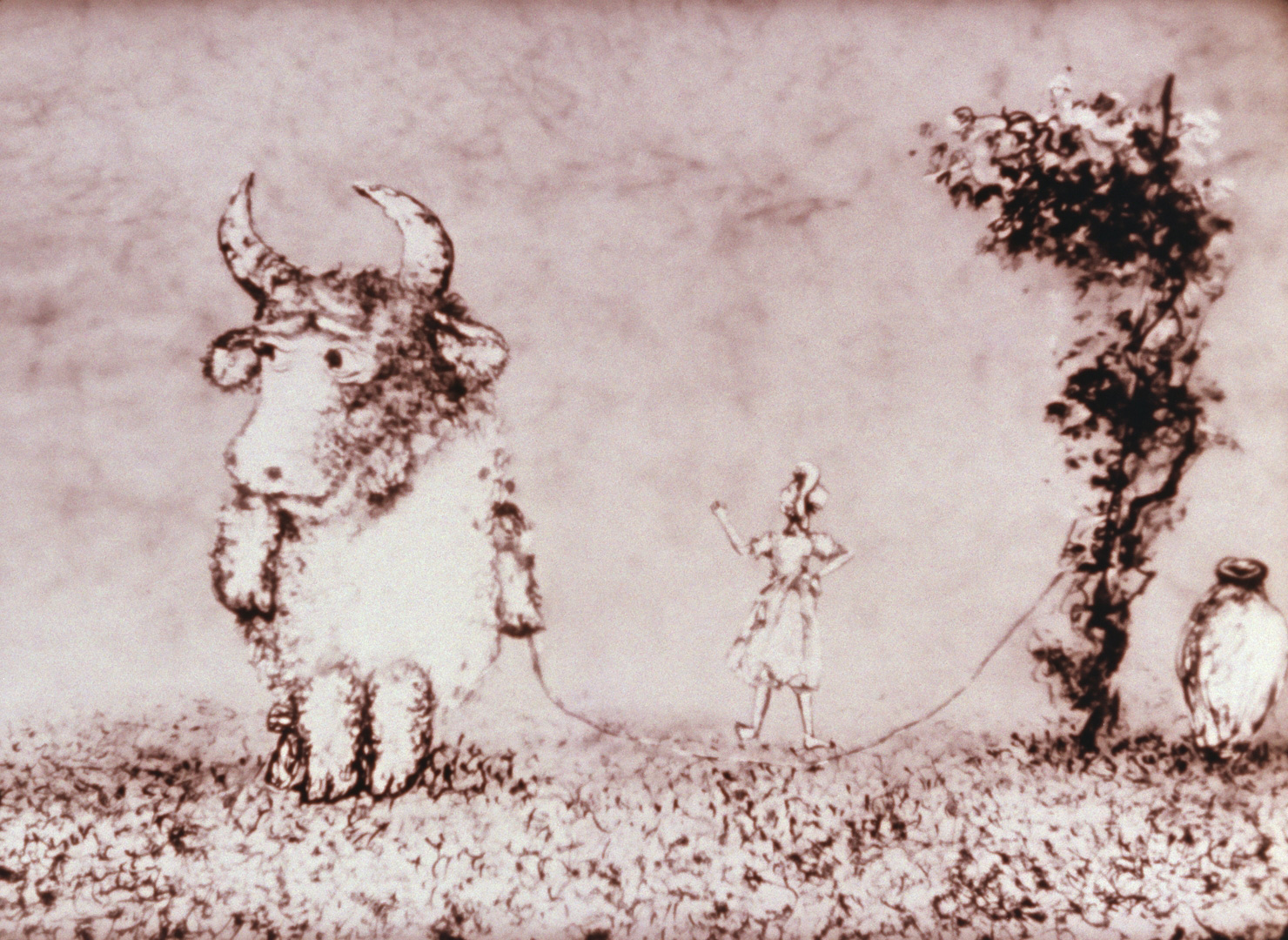 子守歌によって赤ん坊の前に呼び出された狼の子。戦争で女は夫を失い、人々は町を去り、赤ん坊は置き去られて狼の元へ…。