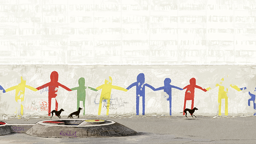 広大で放棄された公営住宅団地の中心への旅。ペリフェリアは荒れていく都市環境を描く。風が吹き、野良犬が放浪し人の面影を追う近代のポンペイ。