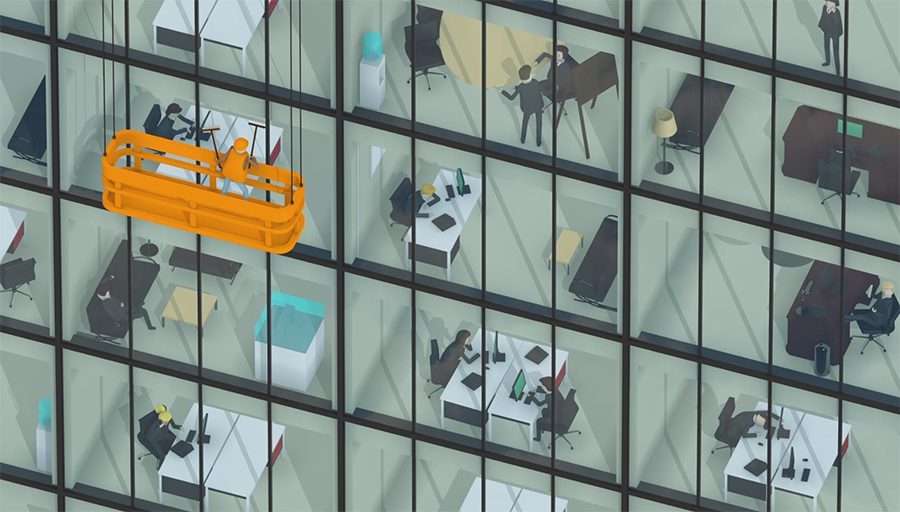 太陽の位置から見た、あるオフィスビルの一日のうちの1分間。